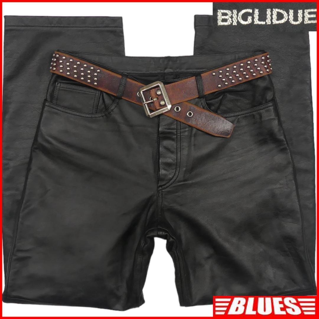 > 即決★BIGLIDUE★W31 レザーパンツ ビリデゥーエ メンズ 48 黒 本革 ライダースパンツ 本皮 パンクロック ライディング ツーリング