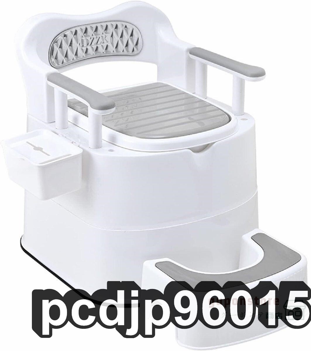 - ポータブルトイレ 介護用簡易 携帯トイレ 便器 大人用 洗えるカゴつき 高齢妊婦のトイレ キャンピングカー用消臭 取り外し可能手すりグレー