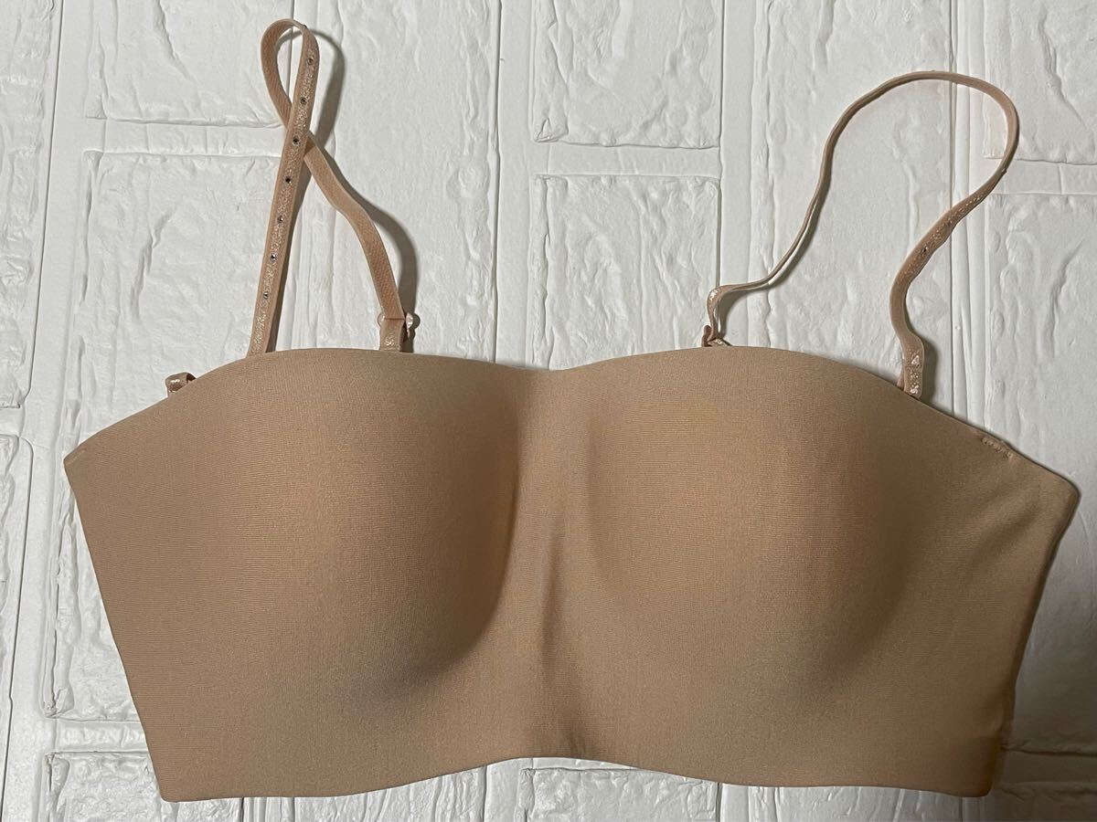 - 新品☆ワコール ブラジャー C75 下着 インナー ベージュブラ ストラップにビジュ付き