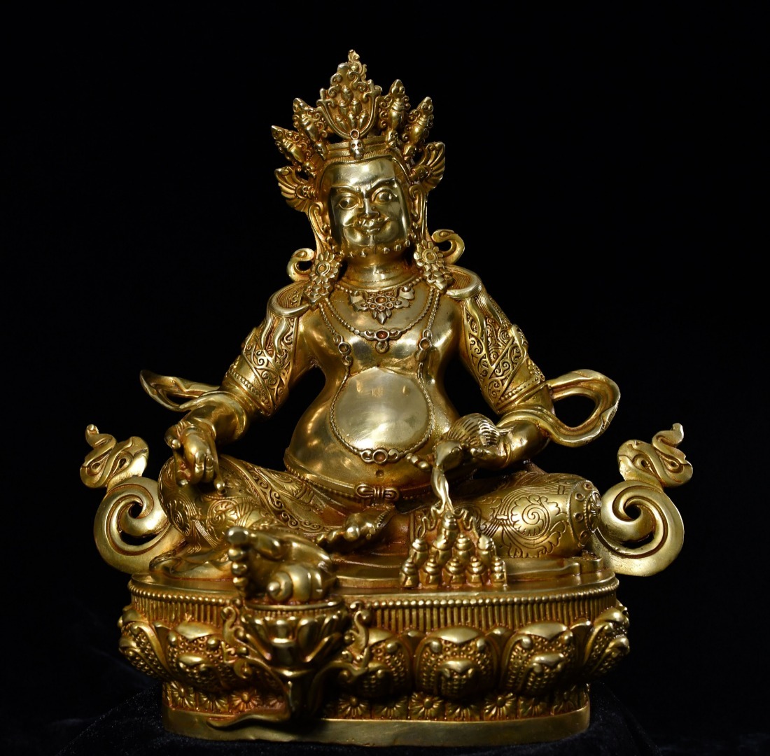 > 仏像 清 銅琉金 チベット仏教 【黄財神】造像 仏教古美術 供養品 極細工 時代物 古置物 中国古美術 唐物 旧蔵 S75