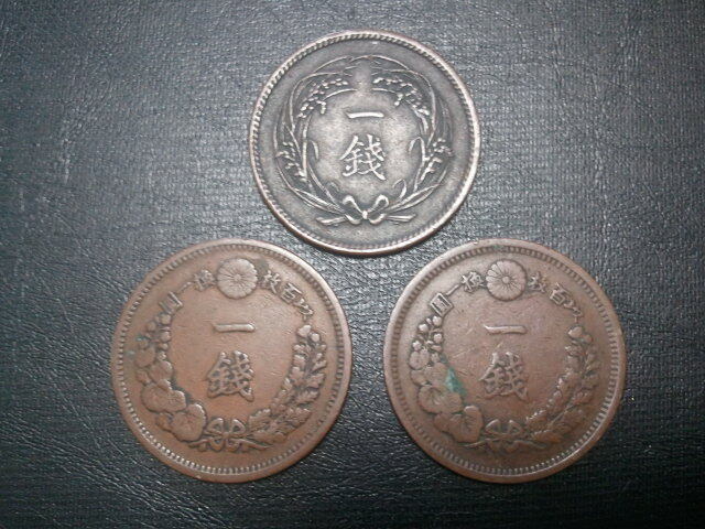 > ☆☆【旧硬貨・銅貨幣・古銭】稲1銭銅貨 大正2年/竜1銭 明治9年 明治10年 古銭 硬貨/一銭 銅貨 貨幣 アンティークコイン☆