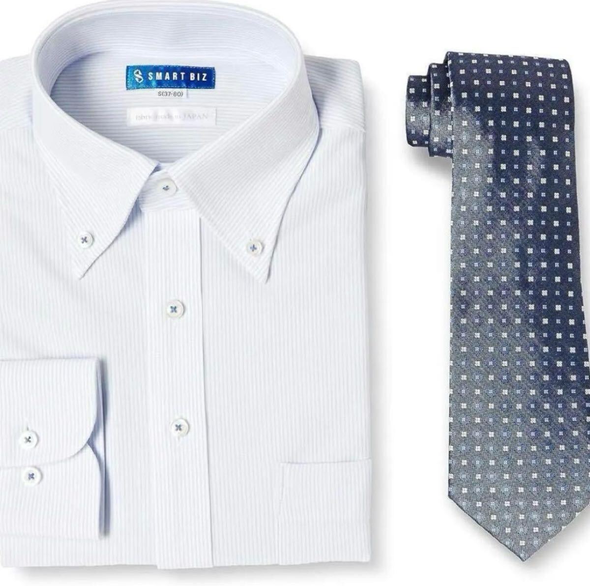 - アイロン不要 ワイシャツ ネクタイ セット ストライプ ニットシャツ Lサイズ