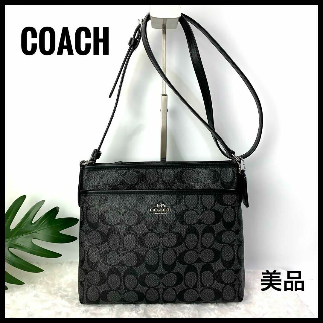 > 【美品】コーチ サコッシュ ショルダーバッグ レザー PVC 黒 ユニセックス