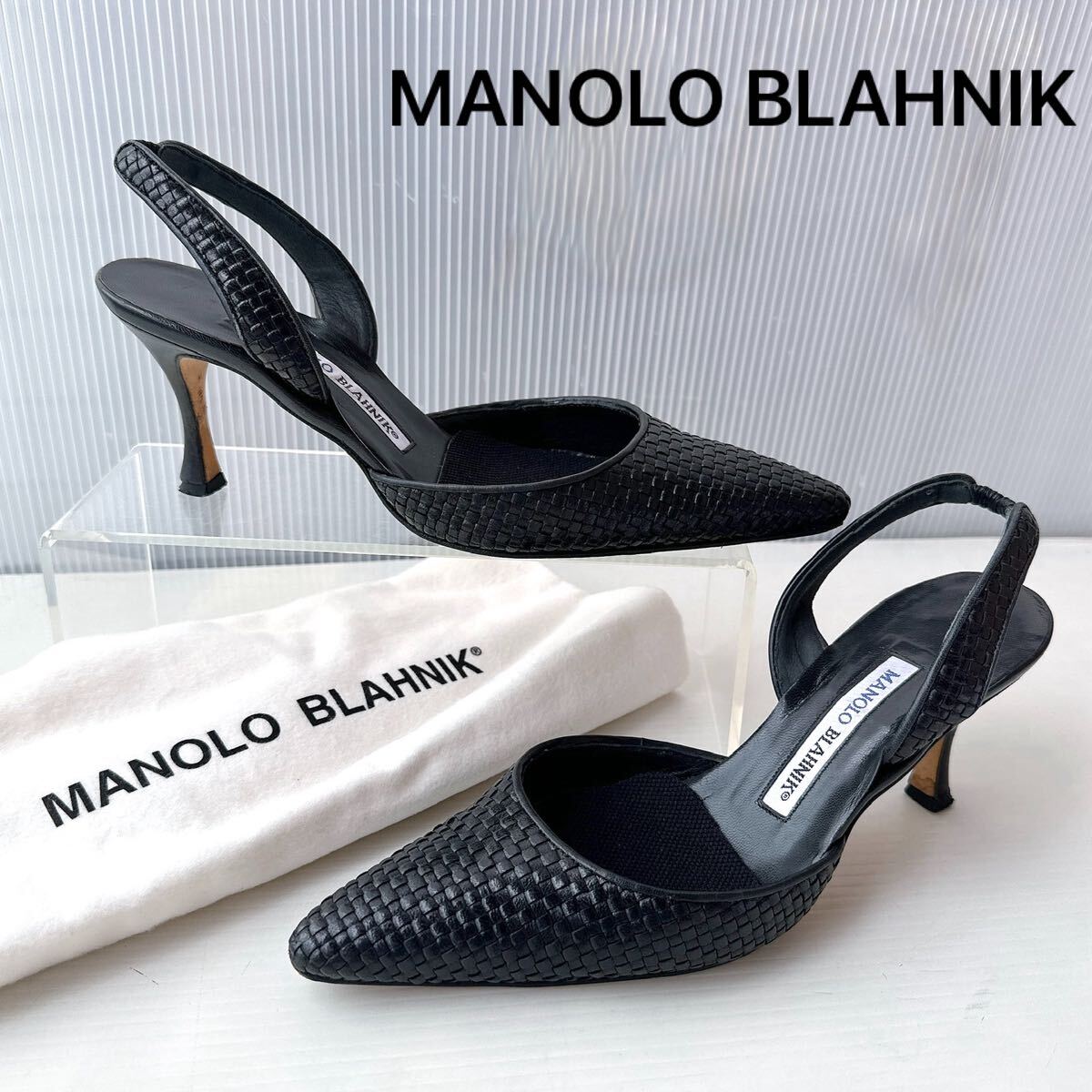> MANOLO BLAHNIK マノロブラニクスリングバック ハイヒール パンプス サンダル ミュール 35 レザー 黒 靴 シューズ レーディス イタリア製