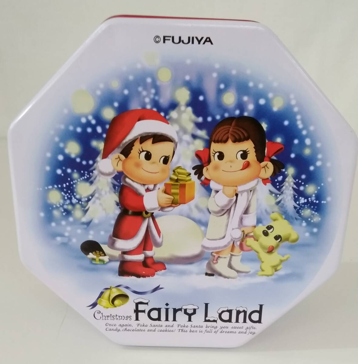 - 【TN-2075】[中古品]不二家 ペコちゃん ポコちゃん クリスマスフェアリーランドS お菓子缶 2001年 [KO]