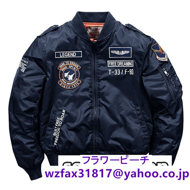 > ジャケット メンズ おしゃれ フライトジャケット MA-1 春 秋冬 防風 防寒 中綿入り コート ジャンパー 立ち襟 刺繍 サイズM~5XL ネイビー