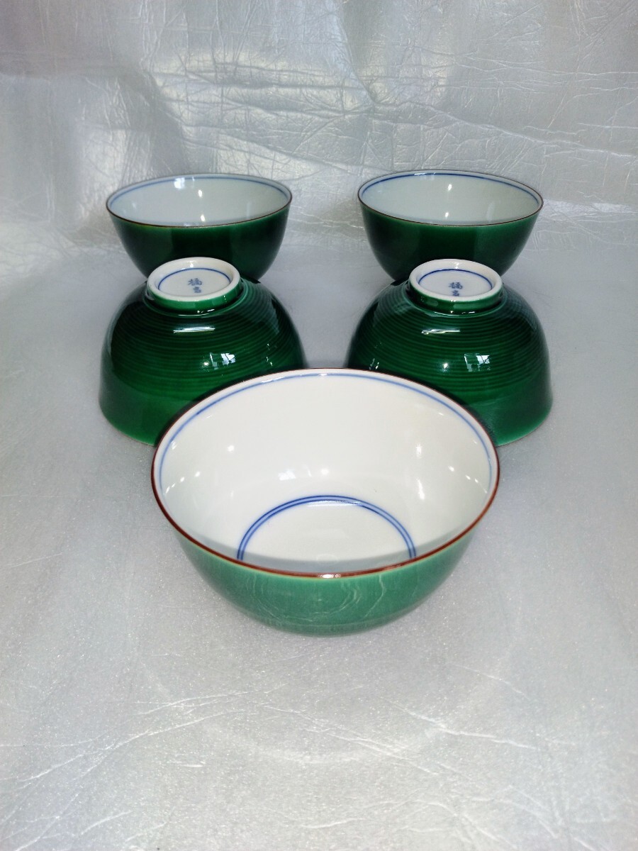 - K113【未使用】 橘吉 青交跡 お茶呑茶碗 5客揃