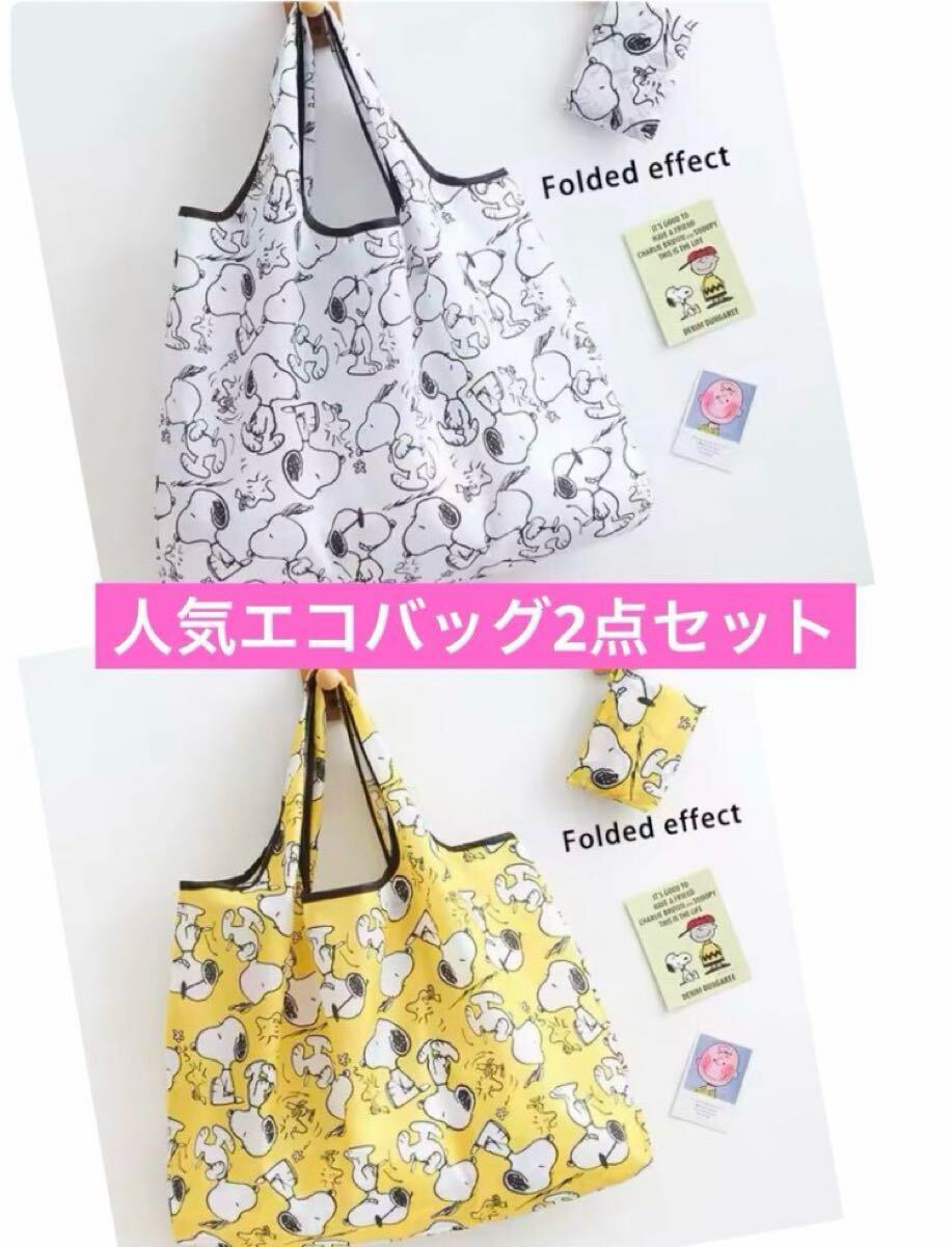 - 【新品未使用】エコバッグ スヌーピー マイバッグ イエロー&ホワイト 2点セット ショッピングエコバッグ 折りたたみ コンパクト