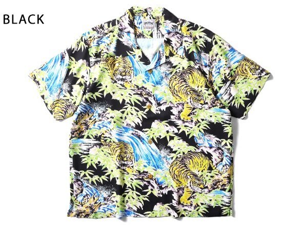 - レーヨンアロハシャツ「虎」◆HOUSTON ブラック XXLサイズ 41198 ヒューストン 和柄 和風 ハワイアン トラ