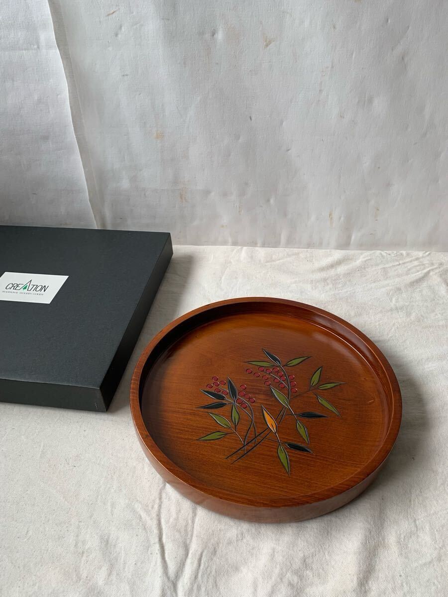 - 箱入デッドストック 南天彫の丸盆 煎茶道具飾り盆花台春日盆茶盆円式民藝骨董古道具古物天然生活インテリアクウネル木製無垢材店舗什器飾り