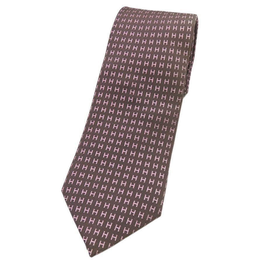 > エルメス ブランド ネクタイ HERMES 高級 シルク 100% レギュラータイ H柄 ピンク グレー系 メンズ OJ10326