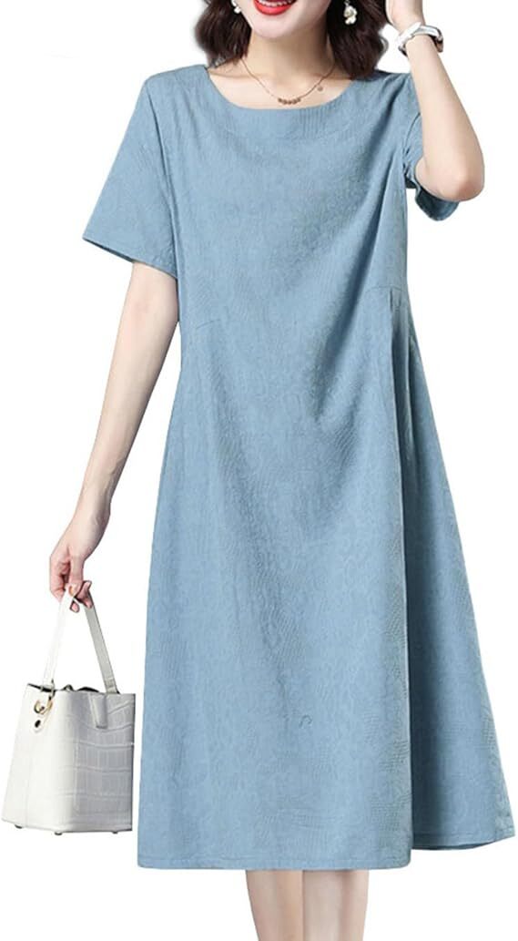 - レディース ワンピース 半袖 夏 無地 きれいめ 着せ かわいい L