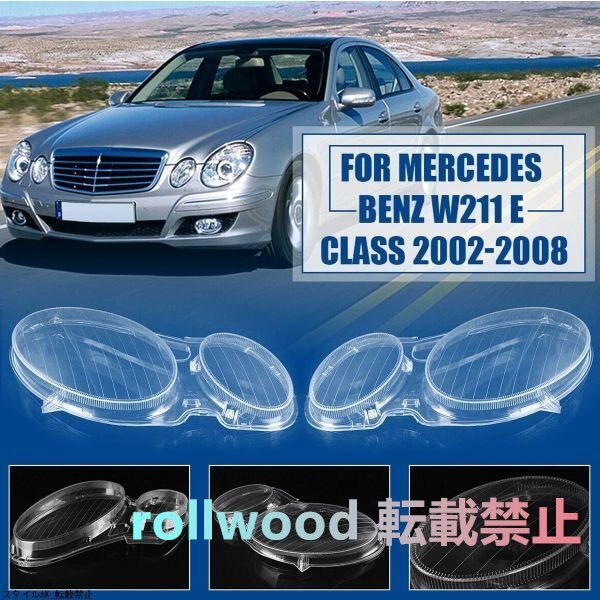 > メルセデス ベンツ W211 Eクラス E240 E200 E350 E280 E300 2002-2008 ヘッドライトレンズカバー クリアヘッドランプカバー ランプフード
