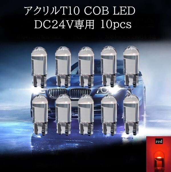 - 【匿名配送】 24V専用 アクリル T10 COB LED 赤(レッド) 10個セット