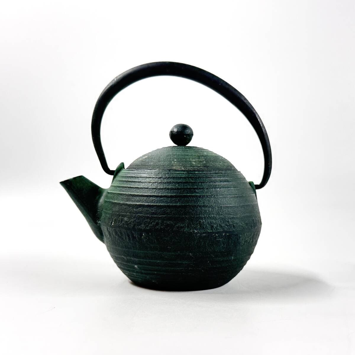 > 【61872Q】未使用 南部鉄器 鉄瓶 急須 珠 深緑 茶こし付き 180ml 重量688g 日本製 経年保管品 現状品