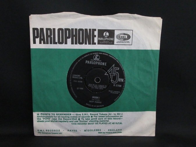 英国 Parlophone オリジナル盤です。7インチシングル盤。盤Vg++のコンディションです。カンパニースリーブ付き。収録曲は「Hush」、「One More Rainy Day」です。大変レアなオリジナルシングルです。SOLD IN UKレーベル表示、マトリックス両面1のファーストプレス。プッシュアウトセンター。盤面スレありますが、針飛び無くまともな音で再生できます。マトリックスは 21157-1/21158-1 です。Euclid_vinyl◆ 検索用:DEEP PURPLE、"DEEP PURPLE"、DEEP、PURPLE、Hush、Parlophone