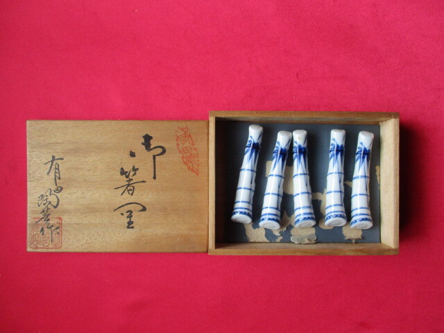 - 有田焼 有田陶芸 竹形 磁器 箸置 5客セット 未使用品