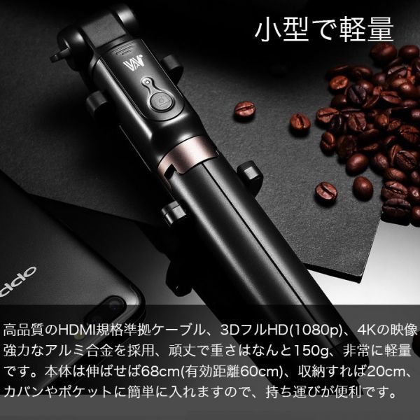 - 自撮り棒 アルミセルカ棒 Bluetoothワイヤレス充電式リモコンシャッター 軽量159gコンパクト一体型三脚一脚兼用 phone/Androidに対応「黒」