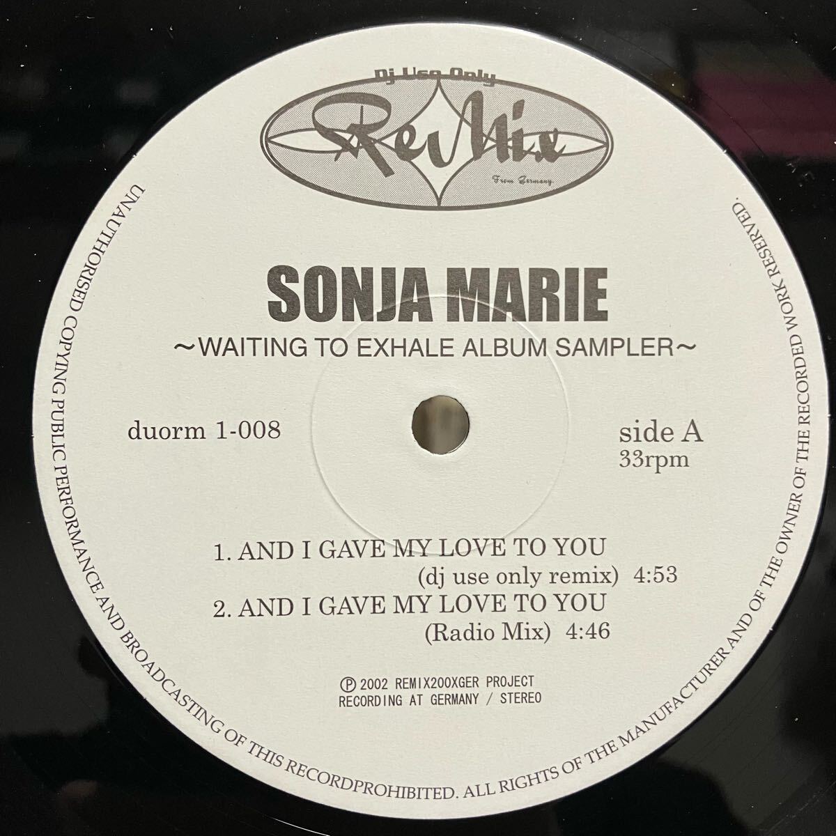 - SONJA MARIE / AND I GAVE MY LOVE TO YOU (dj use only remix) / WAITING TO EXHALE / TONI BRAXTON LET IT FLOW ARETHA FRANKLIN