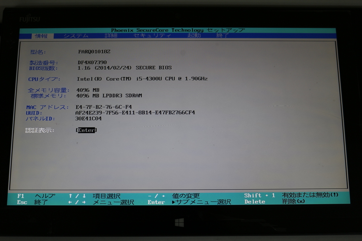 > ジャンク品タブレット 富士通 ARROWS Tab Q704/PV FARQ01018Z i5 メモリ4GB SSD128GB 12.5inch カメラ内蔵 OS無 起動確認済 代引き可