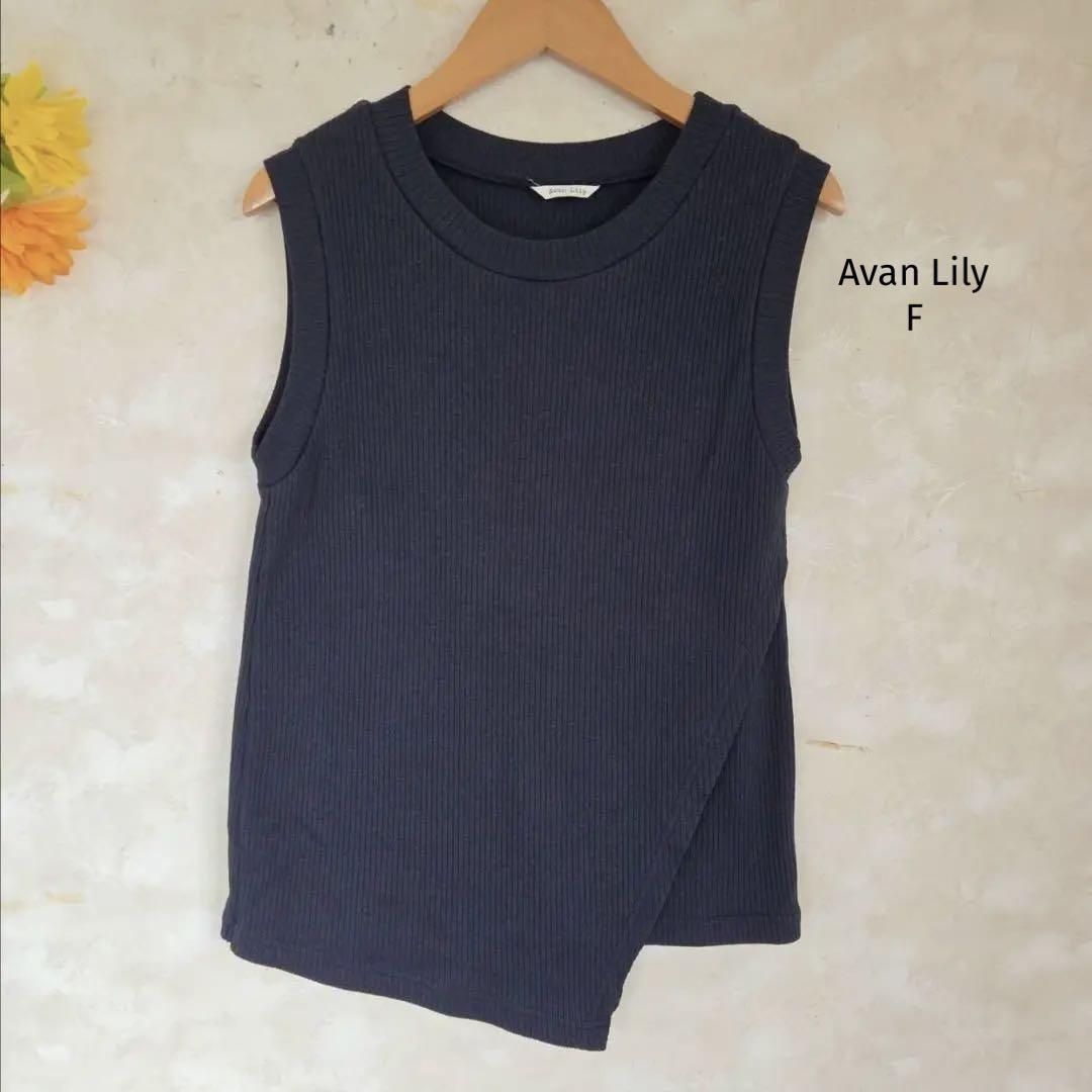 - アヴァンリリィ Avan Lily タンクトップ【F】リブニット ラップ風 紺