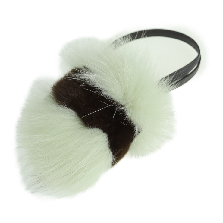 > 超美品 フェンディ バッグチャーム チャーム ファー×レザー ホワイトグリーン系 ダークブラウン ポンポン ツートン【本物保証】