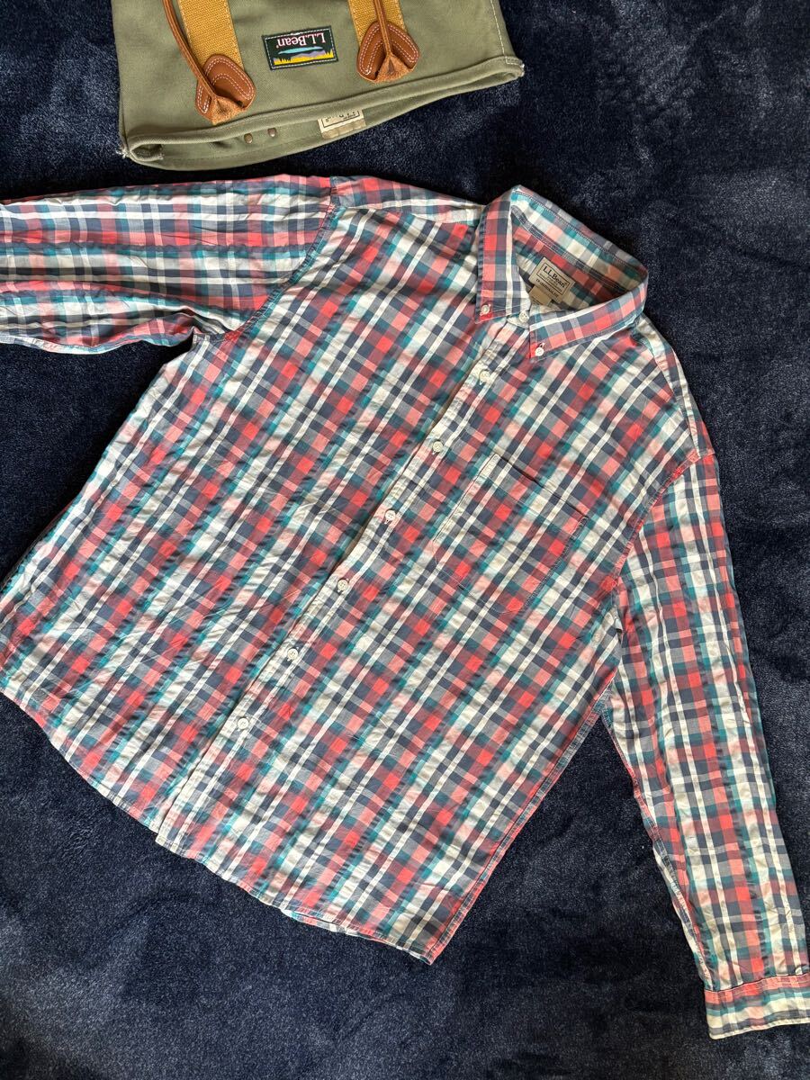 - 超美品 定価8,690円 L.L.Bean エルエルビーン 高品質オーガニックコットン素材 お洒落シアサッカー 襟ボタンダウン 長袖シャツ sizeXL