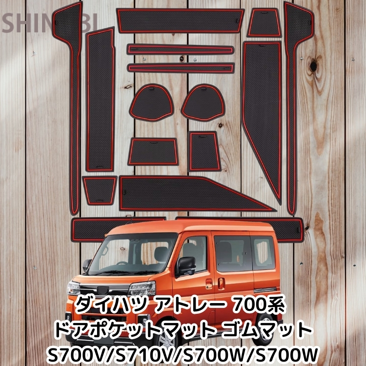 > ダイハツ アトレー 700系 6代目 ドアポケットマット ゴムマット S700V/S710V/S700W/S700W 15枚 レッド ハイゼットカーゴ s700v