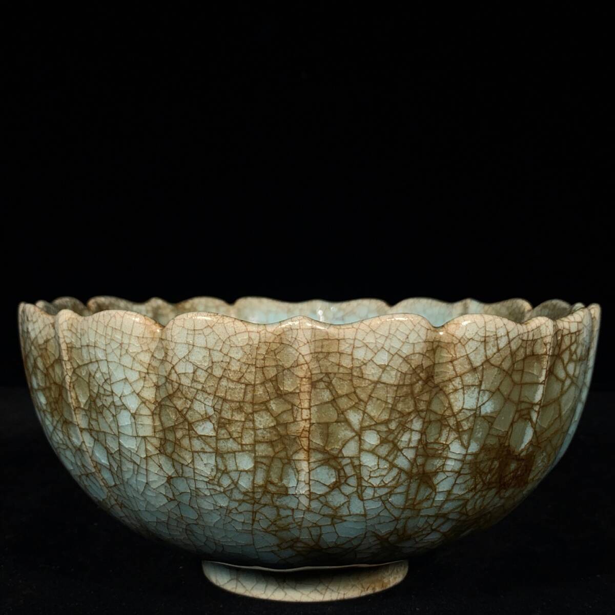 - 【超珍館蔵】宋 古陶瓷品 汝窯 冰裂紋 花口碗 陶藝 古賞物 古董品 古美術品 時代物 旧家蔵出 稀少珍蔵品