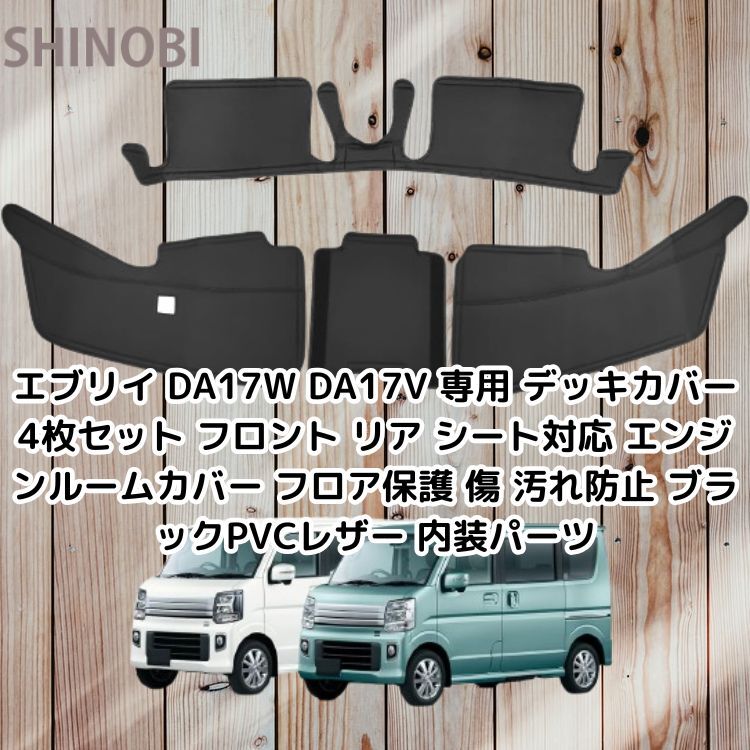 - エブリイ DA17W DA17V 専用 デッキカバー 4枚セット フロント リア シート対応 エンジンルームカバー 傷 汚れ防止 ブラックPVCレザー