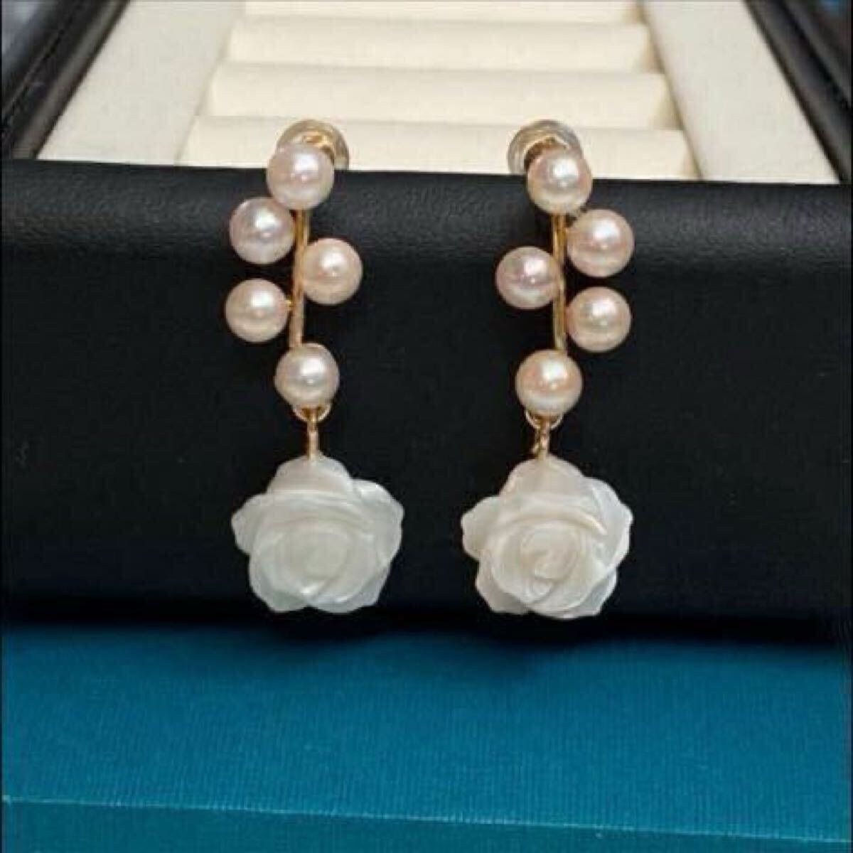 - アコヤベビー真珠 5粒天然パール ピアス 天然貝薔薇2面彫刻 アレルギー対応 シルバーs925