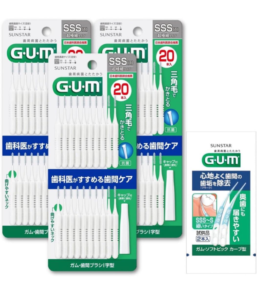 - GUM(ガム) 歯間ブラシ I字型 ワイヤータイプ [サイズ:SSS (1)] 20本入×3個パック