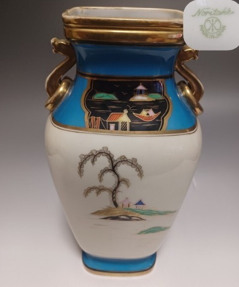 - その5 コレクター収集品 希少 オールドノリタケ 花瓶 マルキ印 湖畔風景絵