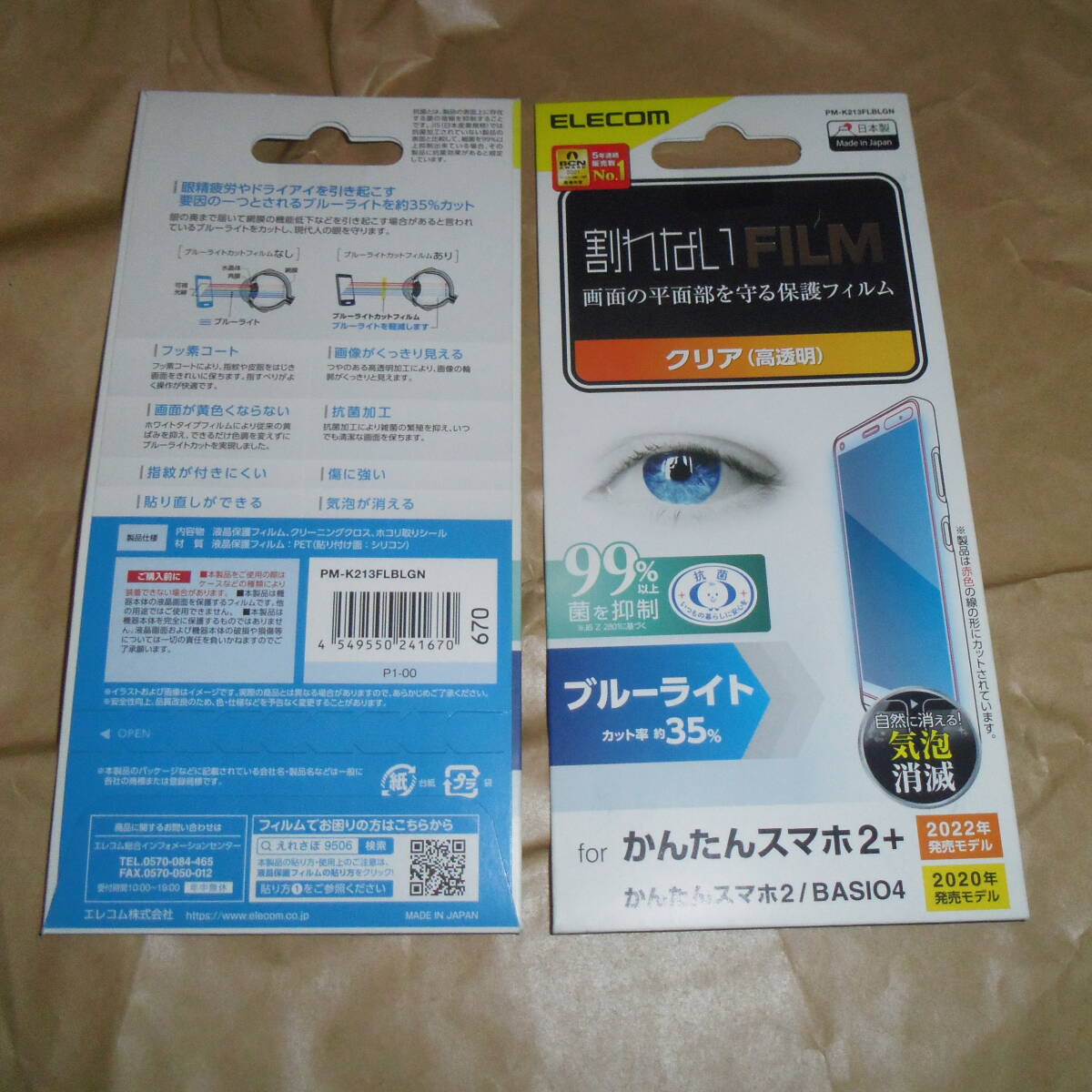 - ELECOM かんたんスマホ2+ かんたんスマホ2 BASIO4 KYV47 指紋防止 ブルーライトカット 高透明 眼精疲労の要因の一つのブルーライトをカット