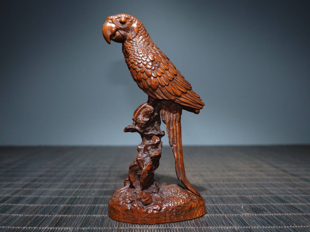 - 【超珍館蔵】黄楊木製 細密彫 鸚鵡 置物 賞物 古賞物 古董品 古美術品 時代物 旧家蔵出 稀少珍蔵品