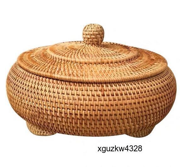 - バスケット 収納 籐 ラタン ラウンド 蓋つき スナック お菓子 キッチン 雑貨 小物入れ 収納ボックス かご 入れ物/XS546