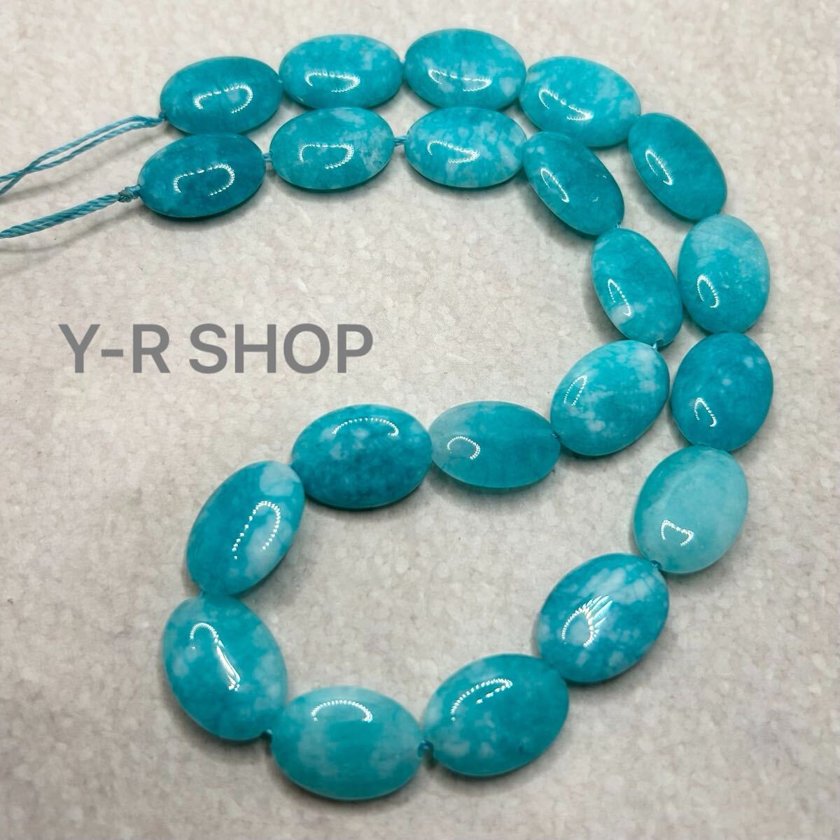- 天然石★艶々ネオンブルーアクアマリンのオーバル型ビーズ★レディースメンズネックレス腕輪ブレスレット数珠ハンドメイド素材パーツ新品