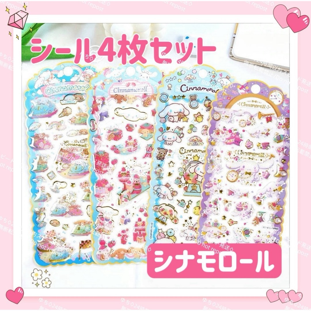 - 海外限定 サンリオ クリスタル シール キラキラ ステッカー 4枚 セット デコ コラージュ アレンジ ぷっくり 可愛い シナモロール