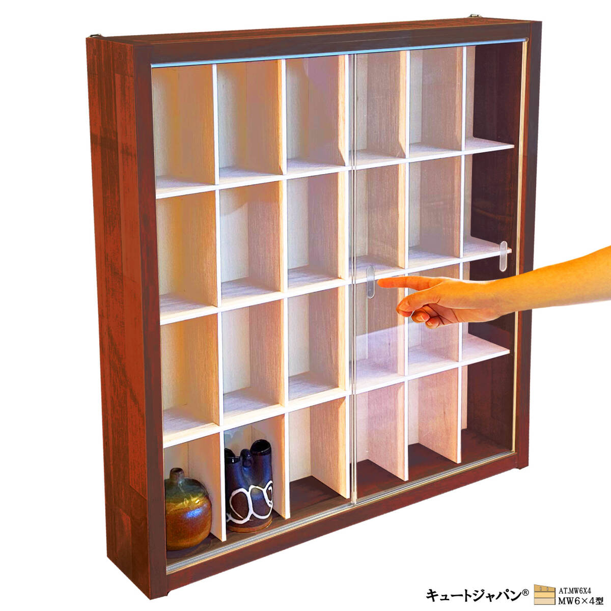 - 送料無料☆コレクション 収納ケース 24マス 陶器 骨董 酒器 陶芸品 和食器 アクリル障子付 マホガニ色塗装 日本製 収納棚