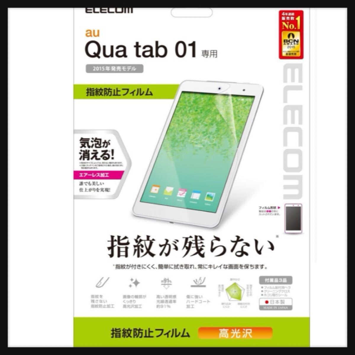 - 【開封のみ】ELECOM ★Qua Tab 01 液晶保護フィルム 指紋防止エアーレス加工 光沢タイプ TBA-KY08AFLFANG