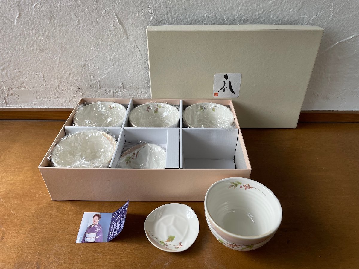 > 【未使用 】茶漬碗ペア TR-102 5客セット ギフト お茶漬け用 小皿付き 白 お茶碗 食器 高島礼子 REIKO TAKASHIMA