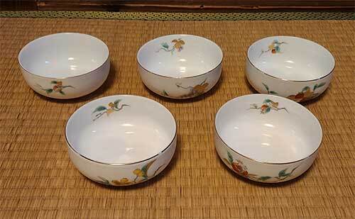 > 小鉢 昇龍 金彩果実 N-1001 5枚セット 直径約11.8cm 元箱付 丸皿 陶器 和食器 昭和 レトロ レア 未使用