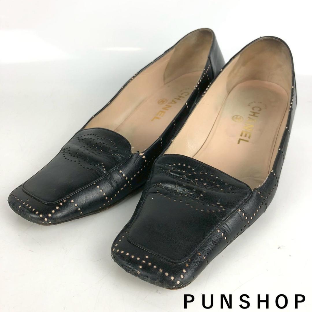 - CHANEL シャネル スクエアトゥ ローファー パンチング レザー 黒 おしゃれ 定番人気 送料無料 大人 おでかけ 人気商品 高級