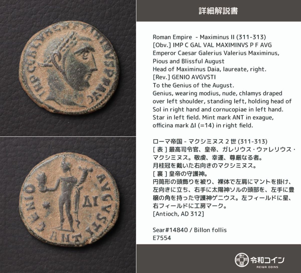 - *[令]マクシミヌス2世 古代ローマコイン【詳細解説書付】古代ギリシャ、ビザンツ帝国[E7554]7j9