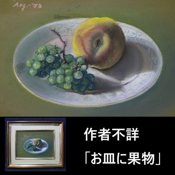 - 【模写】作者不詳 「お皿に果物」 パステル 静物 作者サイン入り 額装/ガラス入 D905