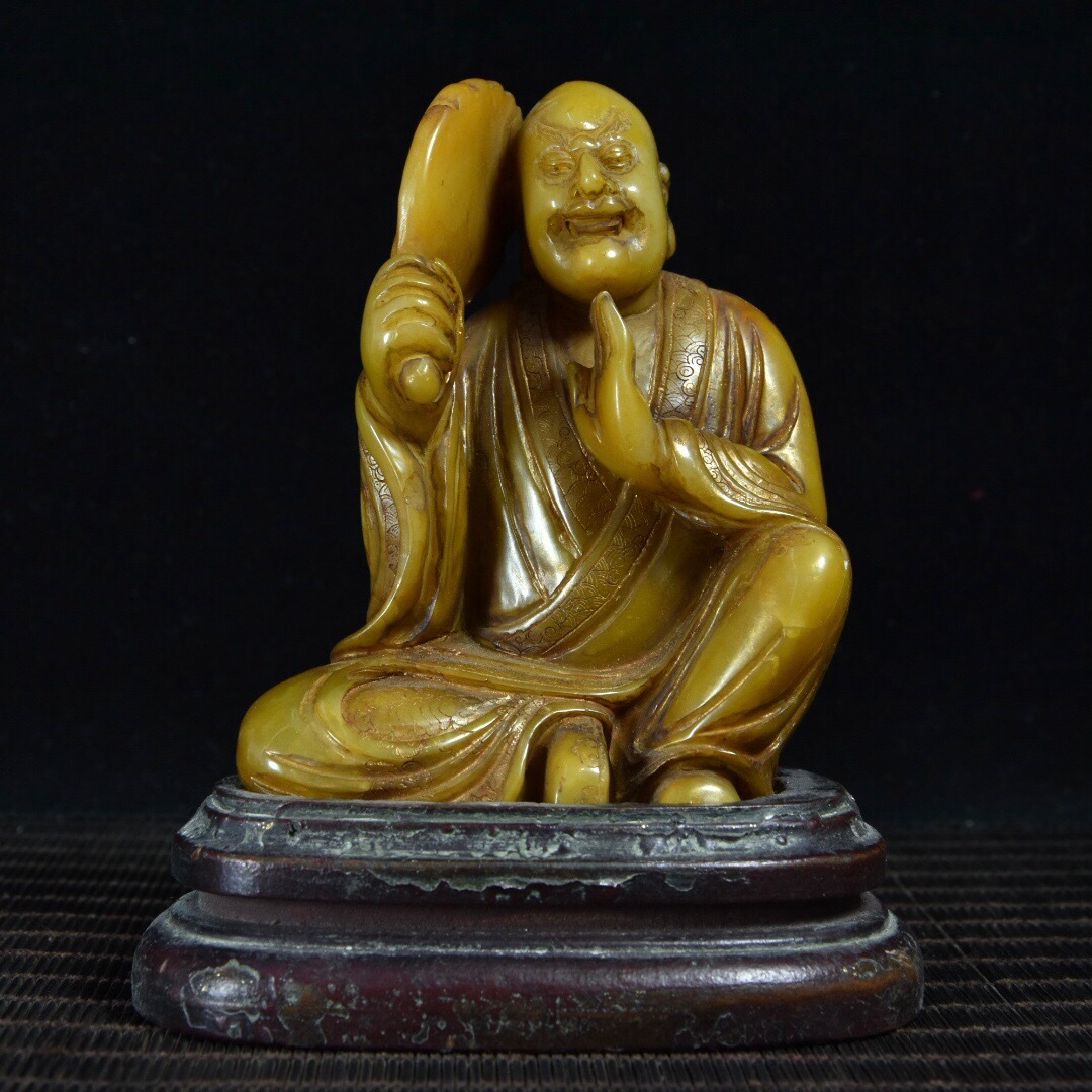- 蔵友旧蔵出 寿山石 田黄石 細密彫 自在羅漢像 箱付 貴重品 稀少物品 置物 賞物 中国時代美術品