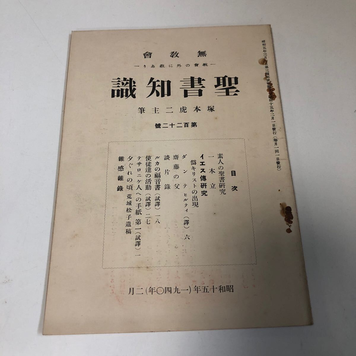 - M5i-028 聖書知識 塚本虎二 第百二十二號 昭和15年 昭和初期 1940年 イエスキリスト キリスト教 122