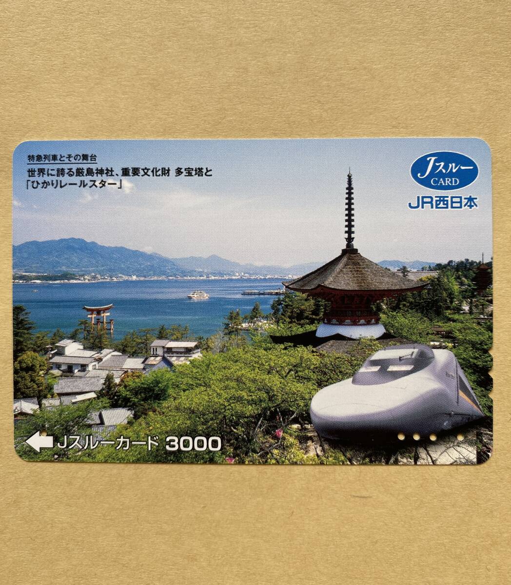 - 【使用済】 Jスルーカード JR西日本 特急列車とその舞台 世界に誇る厳島神社、重要文化財 多宝塔と「ひかりレールスター」