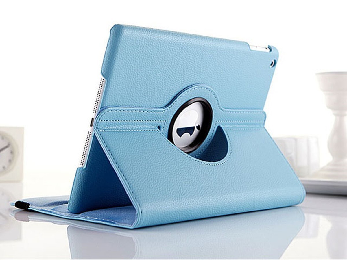 - iPad mini4 7.9インチ 2015年 ライチ皮 360度回転 手帳型 PUレザー スマホケース 水色 Y019