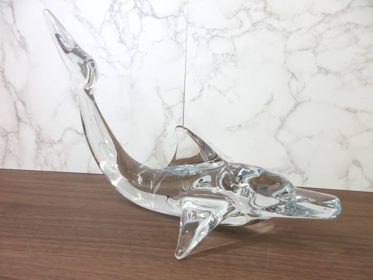- 6F2-46[ドーム フランス クリスタル ドルフィン] Daum France 約40㎝ 大型 オブジェ 置物 インテリア ガラス 工芸品